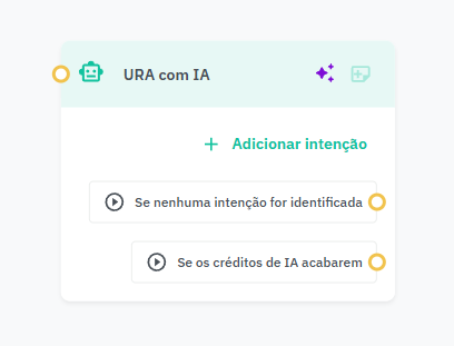 Bloco de URA com IA: Permite que o usuário fale diretamente com o bot e tenha a interação completamente automatizada. Exemplo: o usuário diz "Quero falar com o financeiro", e o bot entende a intenção sem precisar de escolhas numéricas.