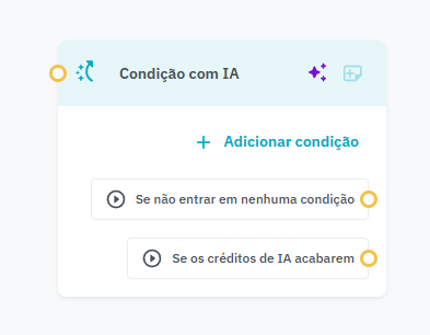 Condição com IA: Este bloco utiliza IA para analisar o conteúdo da conversa anterior e decidir automaticamente o caminho a seguir, ajustando o fluxo conforme o contexto.