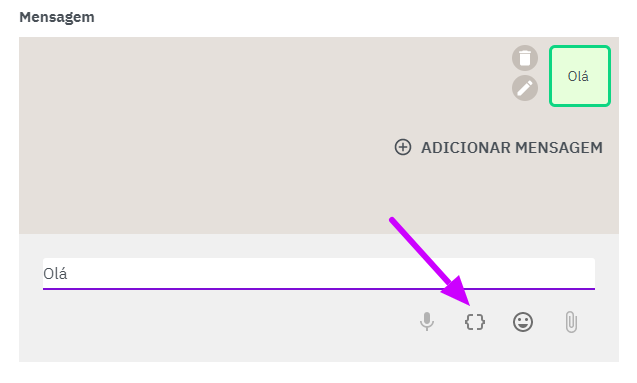 Basta clicar no ícone de seta para inserir a variável desejada.