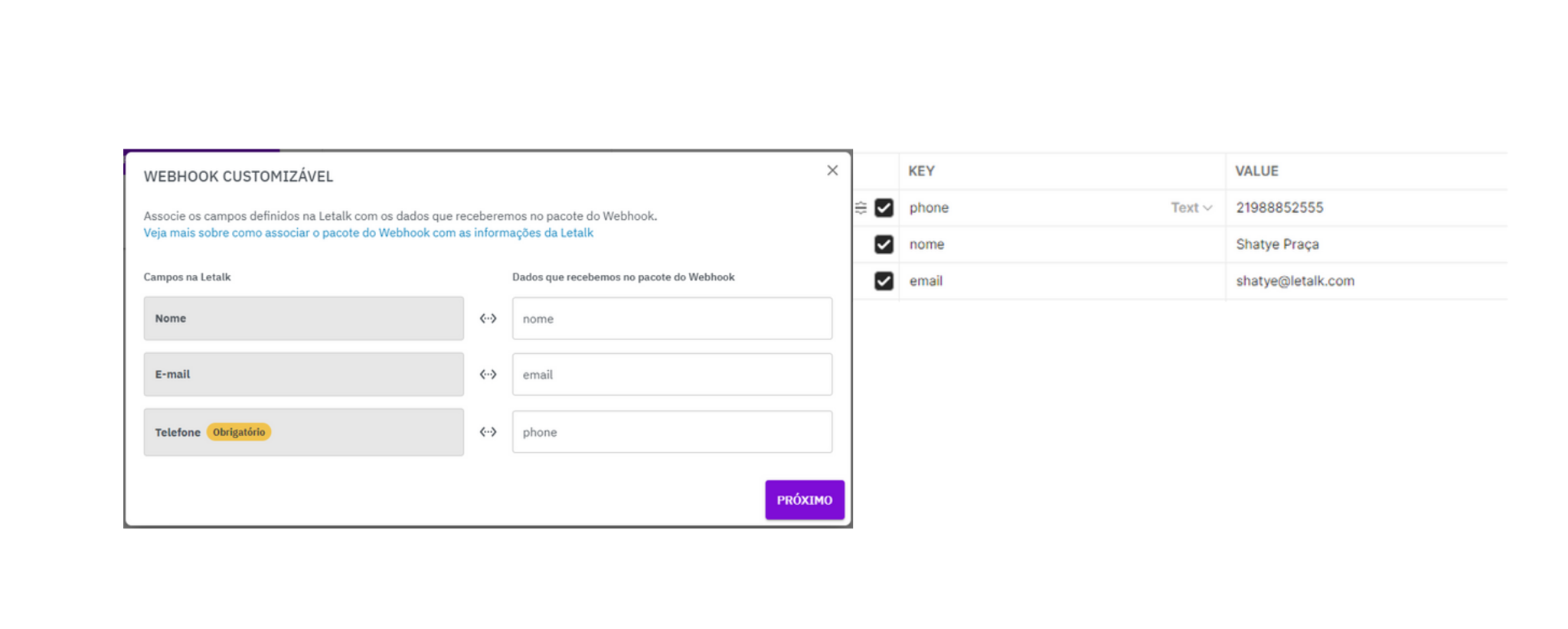 E na integração do Chatbot do Webhook customizado você precisará associar a variável.