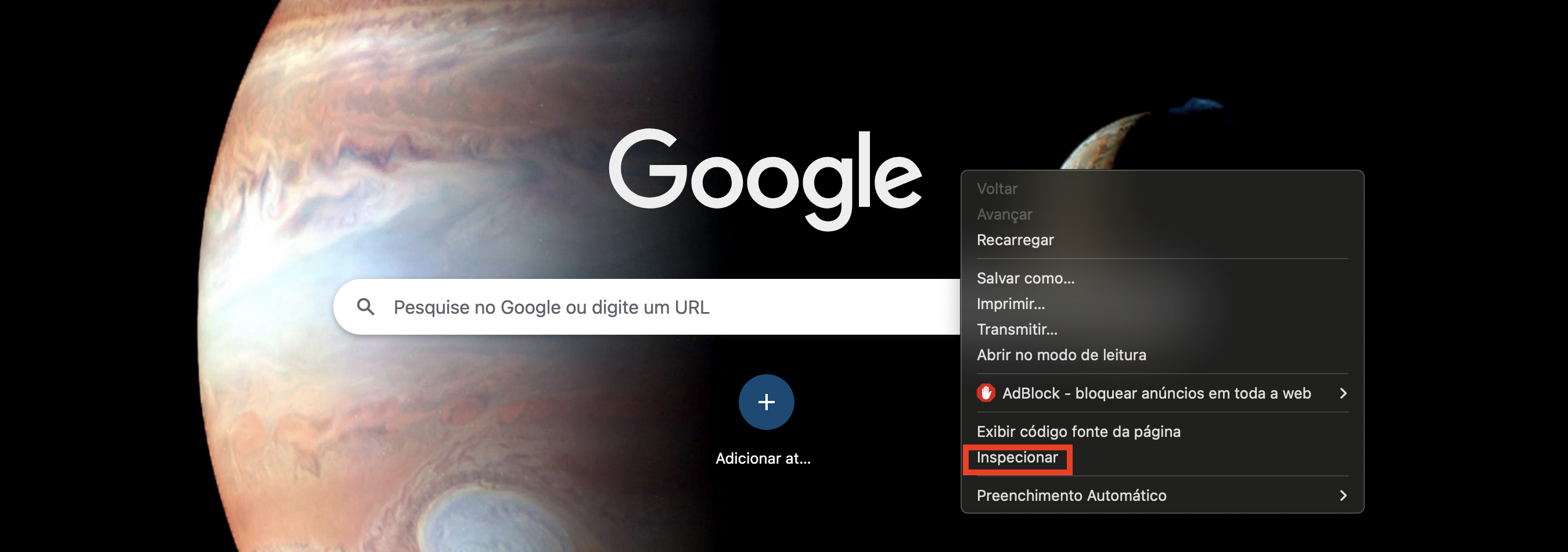 2. Clicar com o botão direito na tela > Inspecionar;