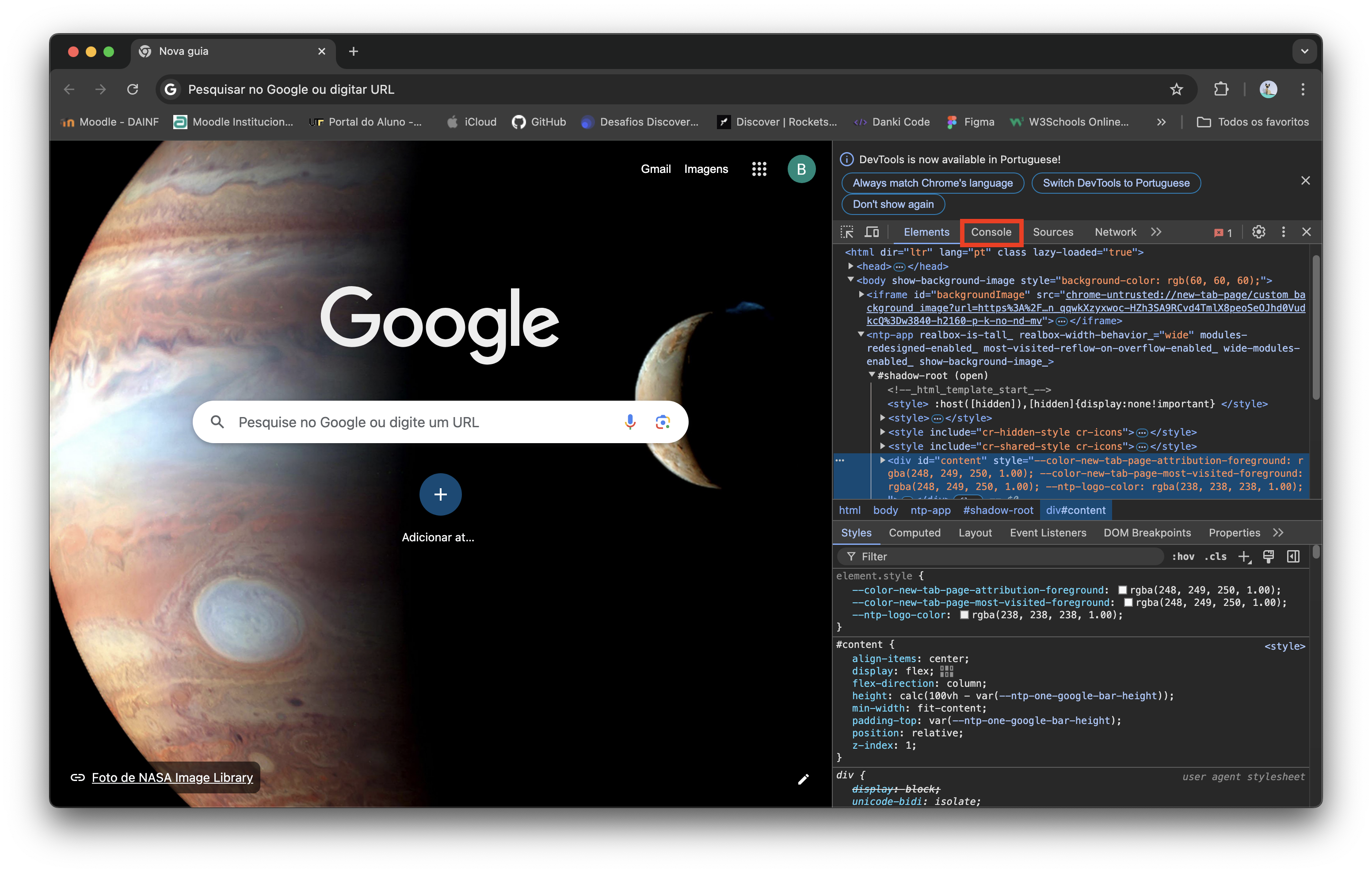 Já dentro da ferramenta de desenvolvedor, iremos clicar em Console