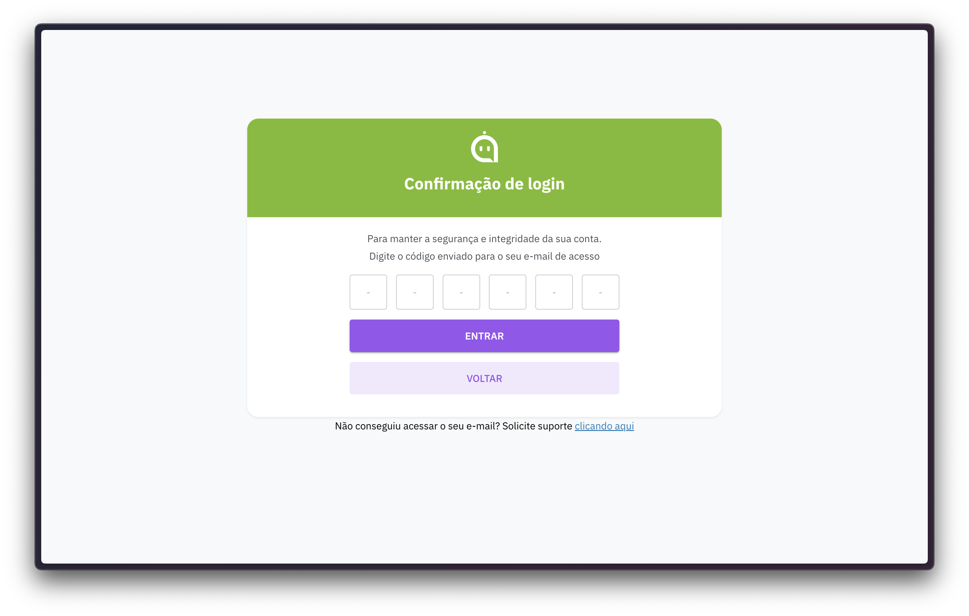 Ao logar em sua conta com o e-mail validado e com um dispositivo novo, será exibida uma tela de solicitação de um código MFA para acesso logo após o envio do e-mail e senha preenchidos. Ao inserir este código, você cadastra aquele dispositivo e, dessa forma, ao realizar um novo acesso posteriormente, será exigido apenas o e-mail e senha.